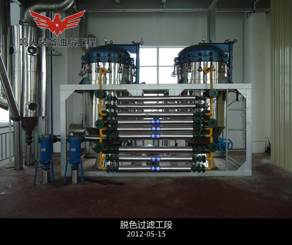 2、脫色工段采用預(yù)混與蒸汽攪拌連續(xù)脫色相結(jié)合的工藝,提高脫色效率,節(jié)省白土用量,操作簡(jiǎn)單方便,負(fù)壓狀態(tài)避免空氣中氧氣與熱油接觸,...詳情介紹